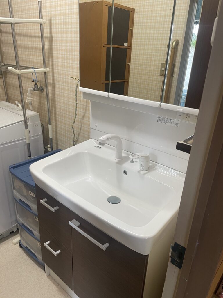 「毎日使う場所だからこそ、気持ちよく使いたい」そんなお客様の願いを叶えるため、洗面所のリフォームを行いました。今回は洗面台の交換だけでなく、床の張り替えも同時に実施。新しい洗面台にはLIXIL製品を採用し、以前よりも使い勝手が良く、お掃除もラクラクです。床が新しくなったことで、洗面所に入った瞬間の印象がパッと明るくなりました。